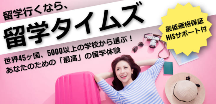 留学タイムズは、創業20年の留学エージェントです。取扱学校数は45ヶ国5000校と業界最多規模で、手数料無料にてご案内しております。さらには大手旅行会社HISとの提携により安心のサポート体制も実現。まずはお気軽にお問合せください。